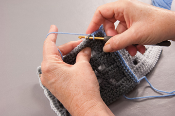 The first thing we work on in the class is a practice swatch. With this swatch, you will learn to work the open and closed Filet mesh, as well as lacets. You’ll also get practice following a Filet Crochet chart. Once you’ve mastered the swatch, you can move on to make either or both of the class projects: the Filet Elephant Baby Blanket and the Filet Name Banner.