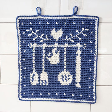 You may ask “Why would you want to do that?” Well, I found a fabulous Tapestry Crochet potholder pattern by Raffamusa that I wanted to crochet, but I didn’t want the jagged edges of the design on the potholder. I wanted more smooth design edges. So I decided to give backwards crocheting a try! And I’m so glad I did! Here’s a look at this fabulous potholder pattern: