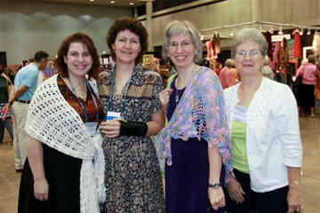 This is my roommate, Shari White, me, Andee Graves and Joyce Bragg waiting to show our crochet designs to the magazine and book editors who were there to talk with the crochet designers.