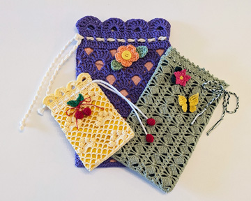 I’m also teaching a 6-hour (1 day) class on making crochet lace bags. Here is a photo of the bags that are available to make in this class:
