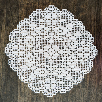 Filet Crochet is made mostly from charts, since each row changes so much and written instructions for each row would be very, very long! It’s usually done with crochet threads and steel crochet hooks, but you can also make larger projects with yarn and larger hooks.