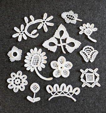 The other class I’ll be teaching is something that’s really new (at least to the US). It’s called Veronese Crochet Lace. I was introduced to this technique by someone at the IOLI Convention in 2022 in Mesa, AZ. She had this book from Italy with some English in it and some step-by-step photos. I looked at the book and decided I’d like to purchase it to learn this technique. So now, 3 years later, I’m ready to teach this fascinating technique to others! Veronese Crochet Lace originated in Verona, Italy! Here are some samples of Veronese Crochet Lace: