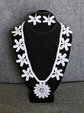 I made all the small pieces in the top photo from the book, along with some other really old instructions for Veronese Crochet Lace that I was gifted from one of the authors of the book! I also designed and made the necklace and earrings set in the other photo. This technique is so fascinating because you don’t insert your hook into the same places as in typical crochet patterns. You also use a form of Tunisian Crochet in some of these pieces. I LOVE making (and designing) Veronese Crochet Lace!