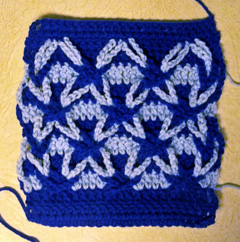 For the past 2 days, I’ve been working on the contents of my Polish Stars class that I’ll be teaching at the CGOA Conference in Reno, NV in September. I had some swatches already made, but needed to make some new ones that aren’t as big for the class swatches. And, of course, I’ve been writing and checking the new patterns for these swatches, too! I tried following the patterns in some leaflets that I have on Polish Stars, but I’ve found a lot of errors in the instructions, so it’s back to the drawing board! If you’ve never seen a Polish Star in crochet, this is how it looks: